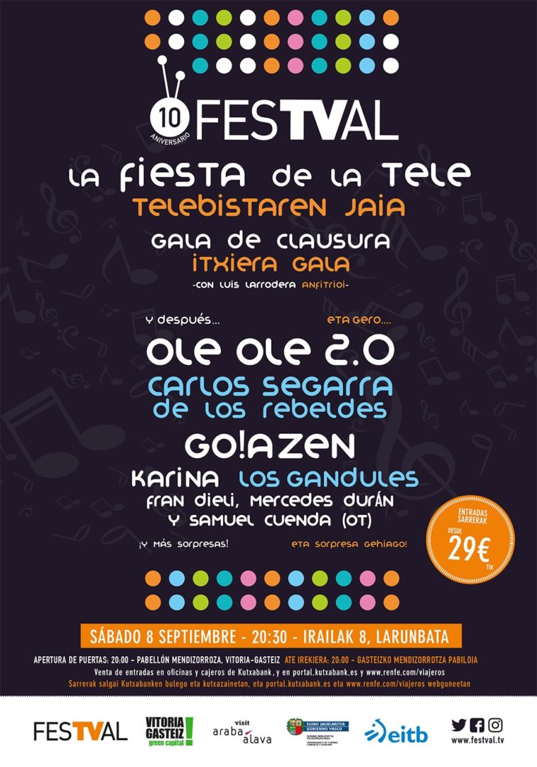 El Festival de Televisión de Vitoria-Gasteiz (FesTVal) cumple 10 años y lo celebra por todo lo alto con una sorpresa para el público: La Fiesta de la Tele.